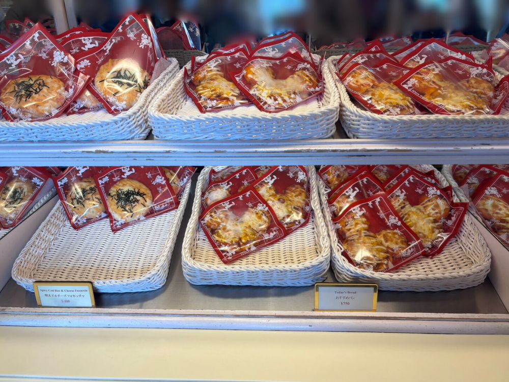 おすすめパンとして、ミッキーの形をしたピザパンのようなものと明太子&チーズフォカッチャ。