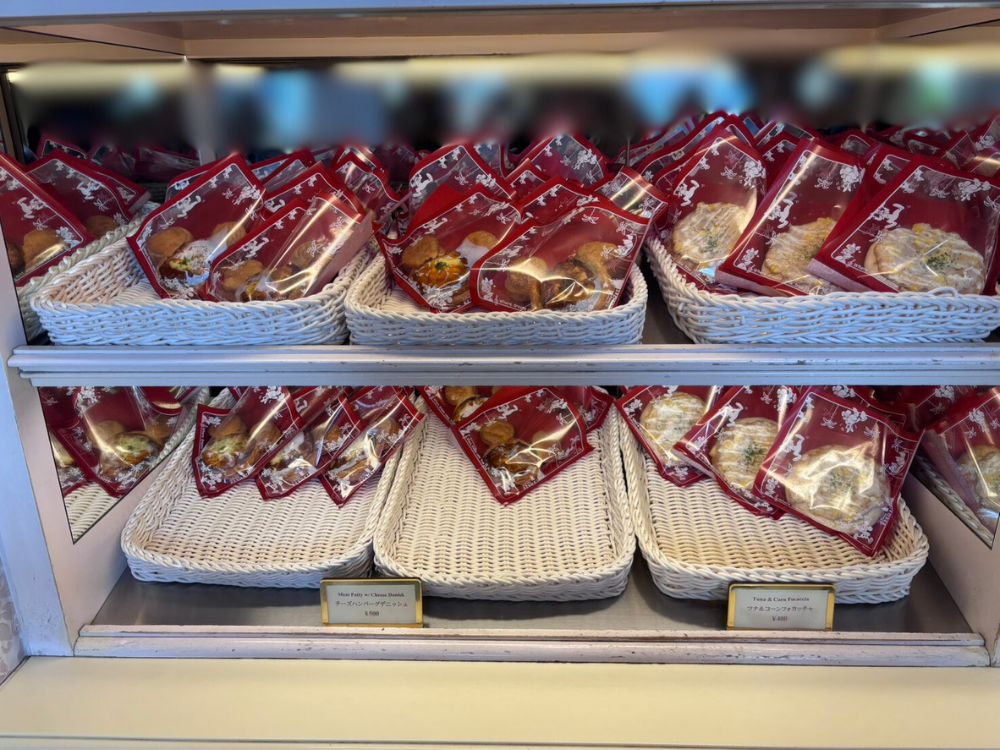 隣には、ツナコーンフォカッチャとミッキーの形をしたチーズハンバーグデニッシュ。