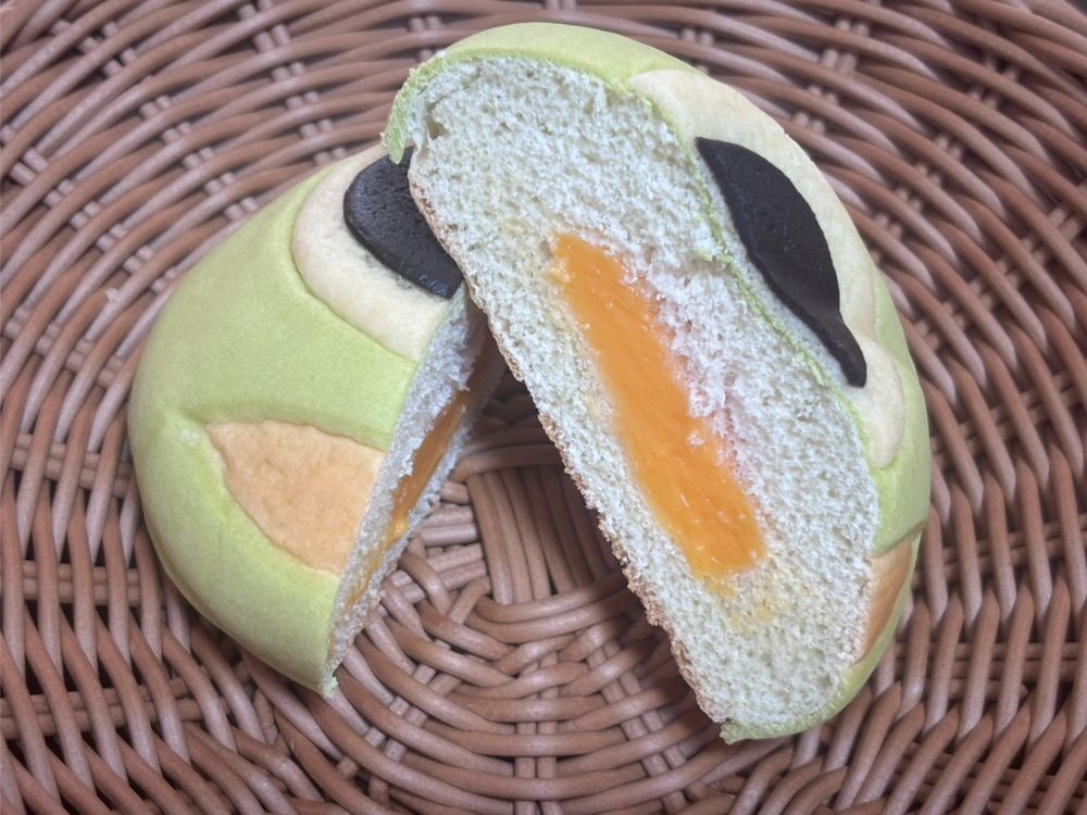 中にはメロンクリームが入っているのですが、生地自体も薄い緑色をしています。