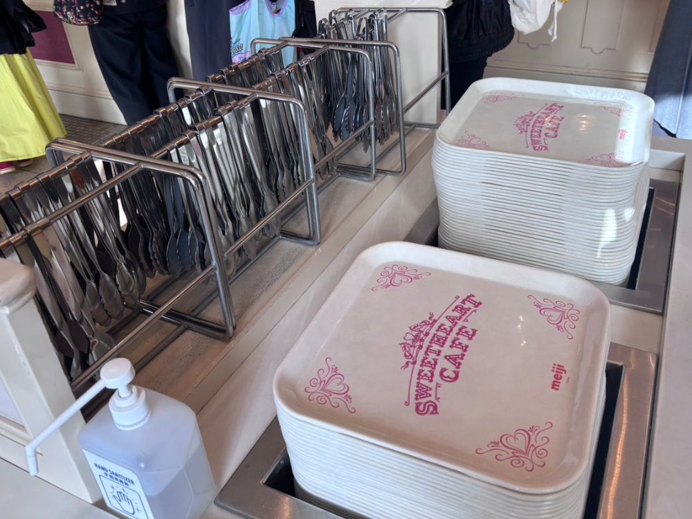 8時45分に入園時間が早まり、9時過ぎには入園できたのですが、入園直前に子どもが寝てしまったので休憩も兼ねてスウィートハート・カフェに並びます。