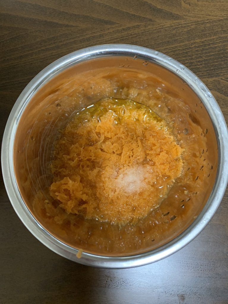 1.ボウルに、にんじんを50gすりおろす