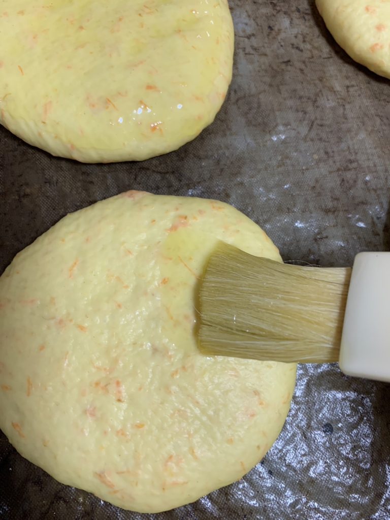11.刷毛(なければスプーン)で表面にオリーブオイルを塗る
