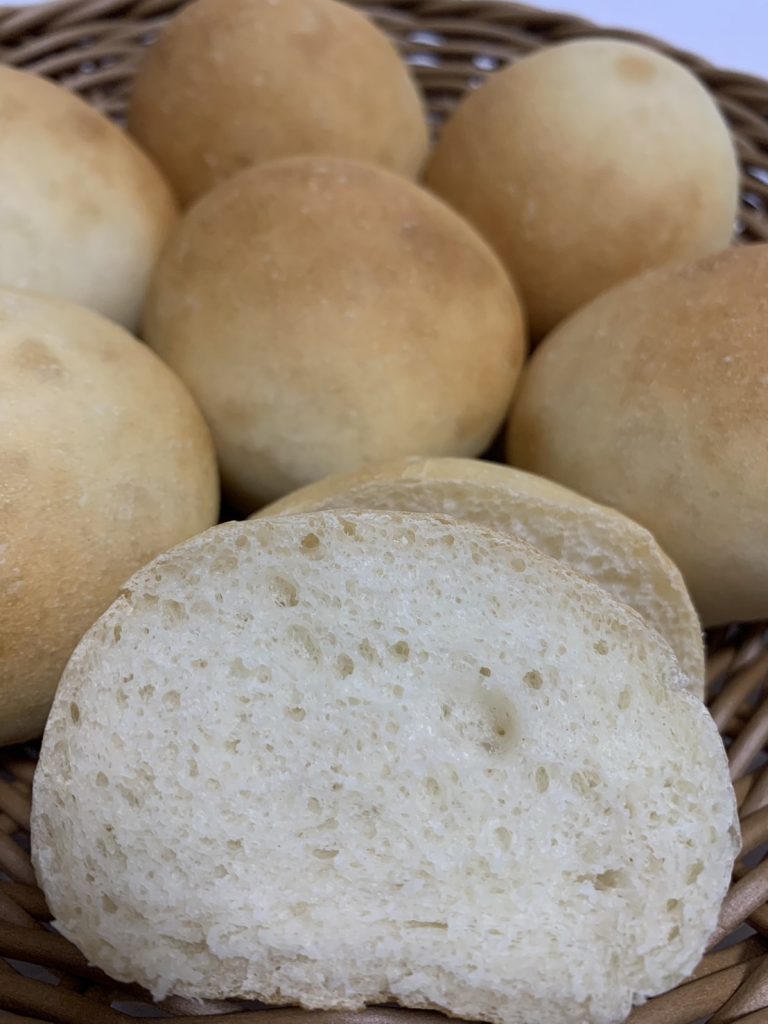 こちらが白神こだま酵母で作った基本のパンです。材料は強力粉、水、白神こだま酵母、砂糖、塩のみのシンプルなパンです。