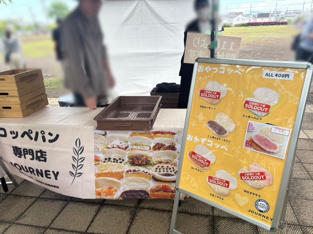 さらに歩くと、ほぼ完売の店舗を発見。列もなかったため、もう売り切れかと半分諦めてお店に伺うと「さくらあん」のコッペパンが残り2つとのこと。