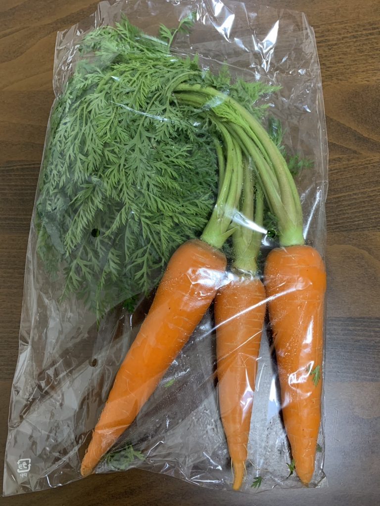 週末に出かけた際に、立派な無農薬葉付き人参を購入しました♪