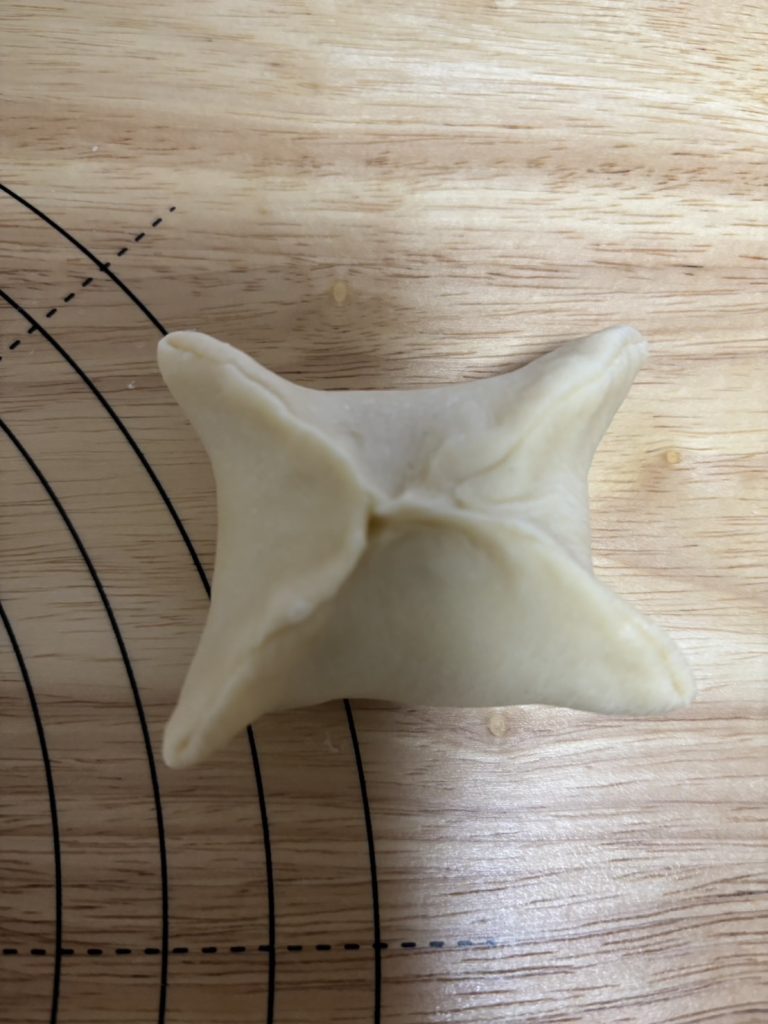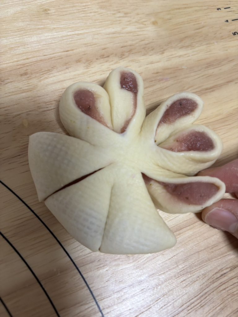 11.くっつけた生地の先端部分を中心でくっつける