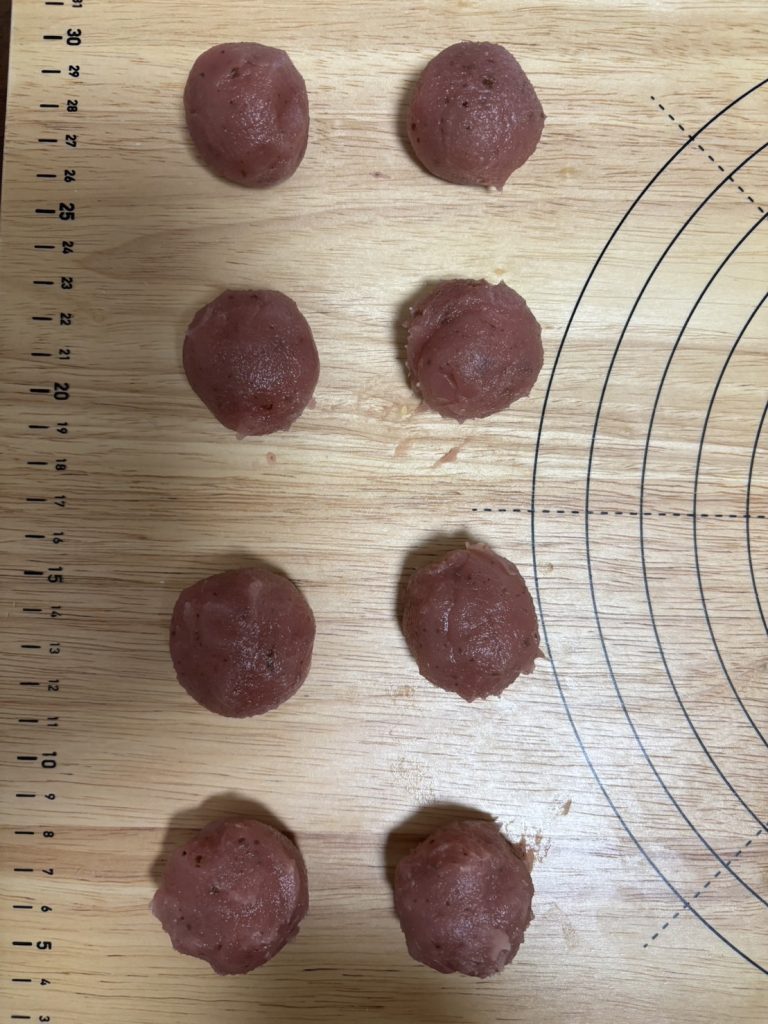 8.桜あんを約30gずつ計量して手で軽く丸める