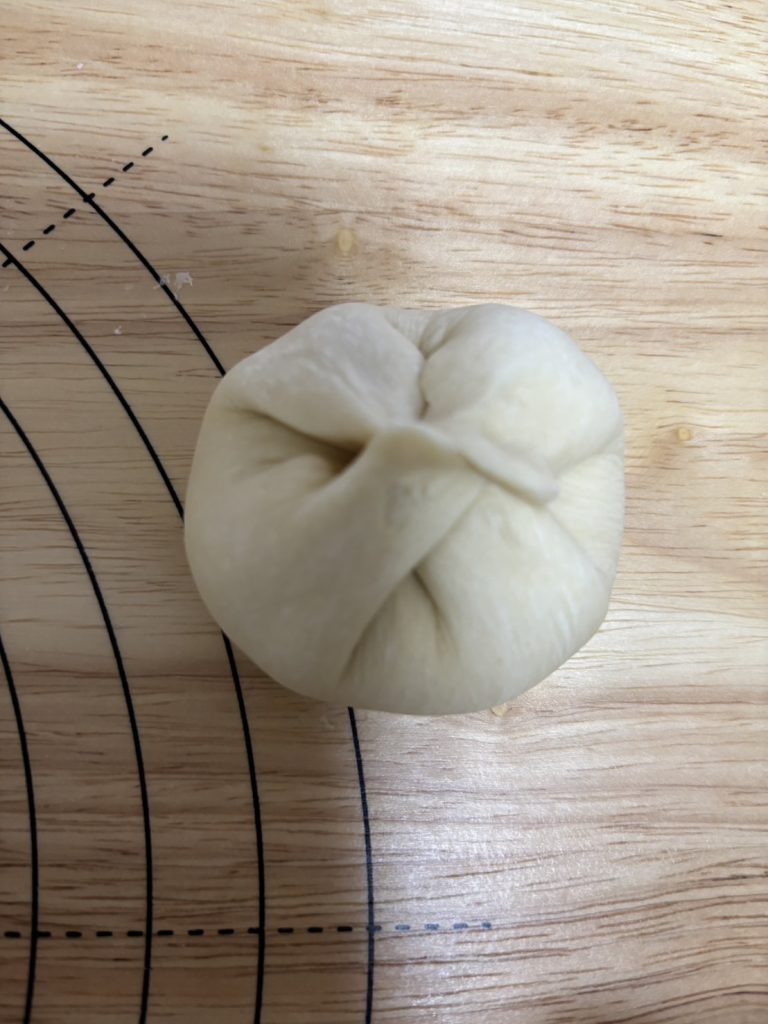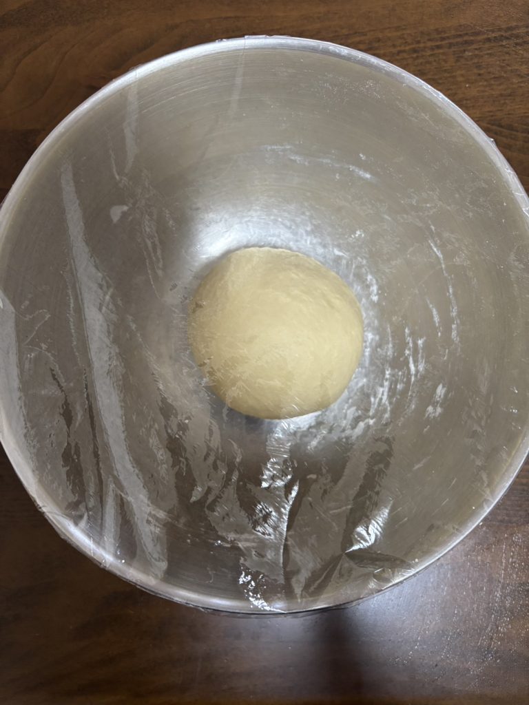 4.15~20分程度捏ねて表面がなめらかになってきたら、かるく丸めてボウルに入れる。